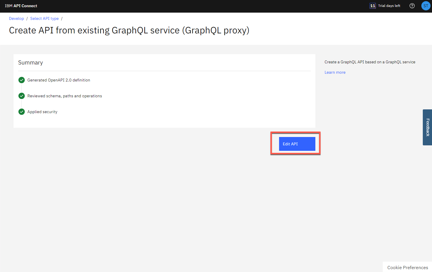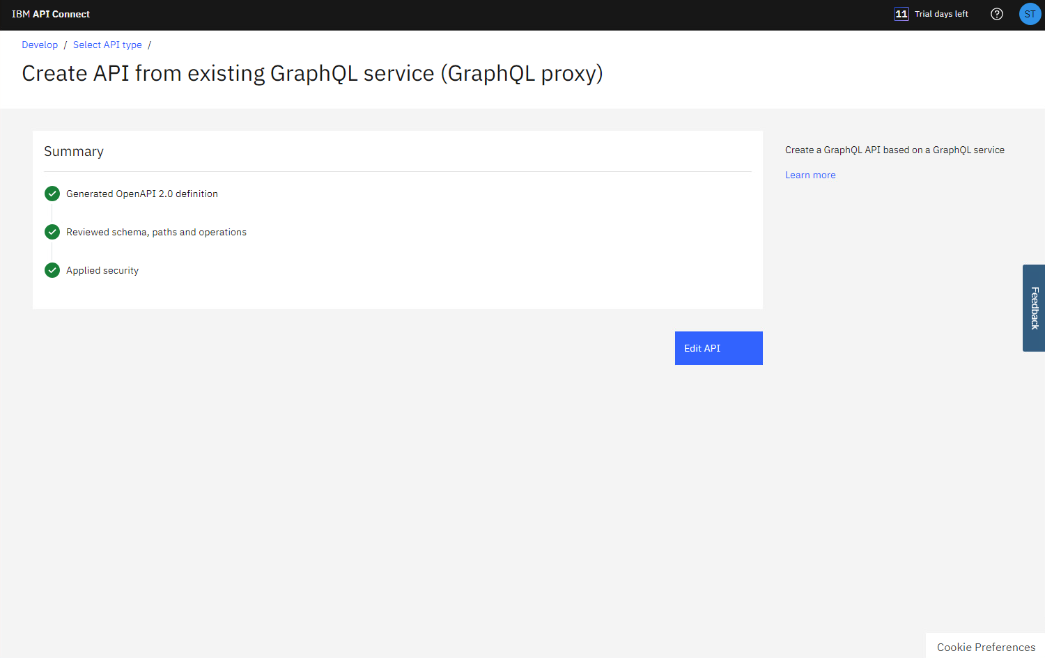 素晴らしい!API Connect は GraphQL プロキシ API を正常に作成しました。