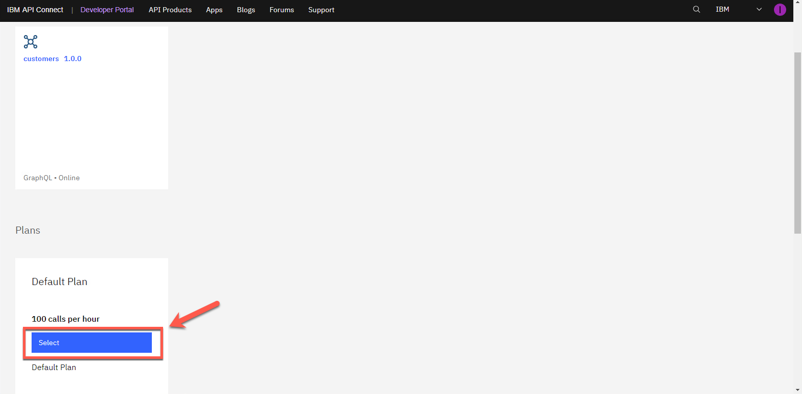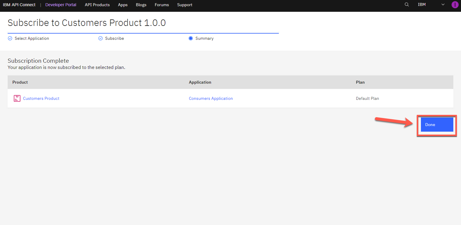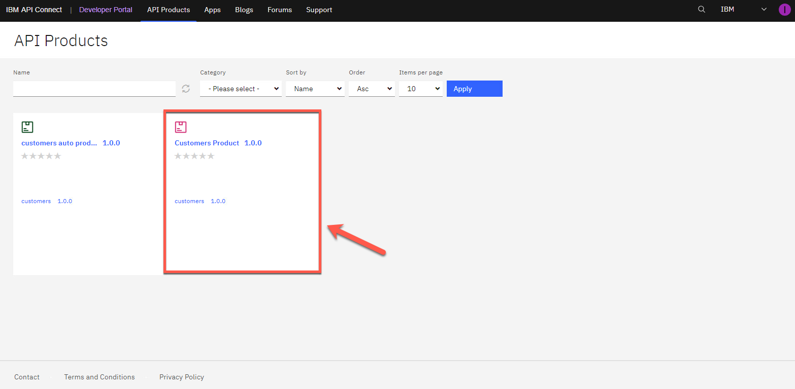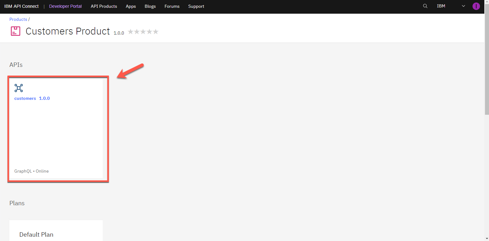 製品画面に戻りました。ここで API を調べてみましょう。customers 1.0.0 API をクリックします。