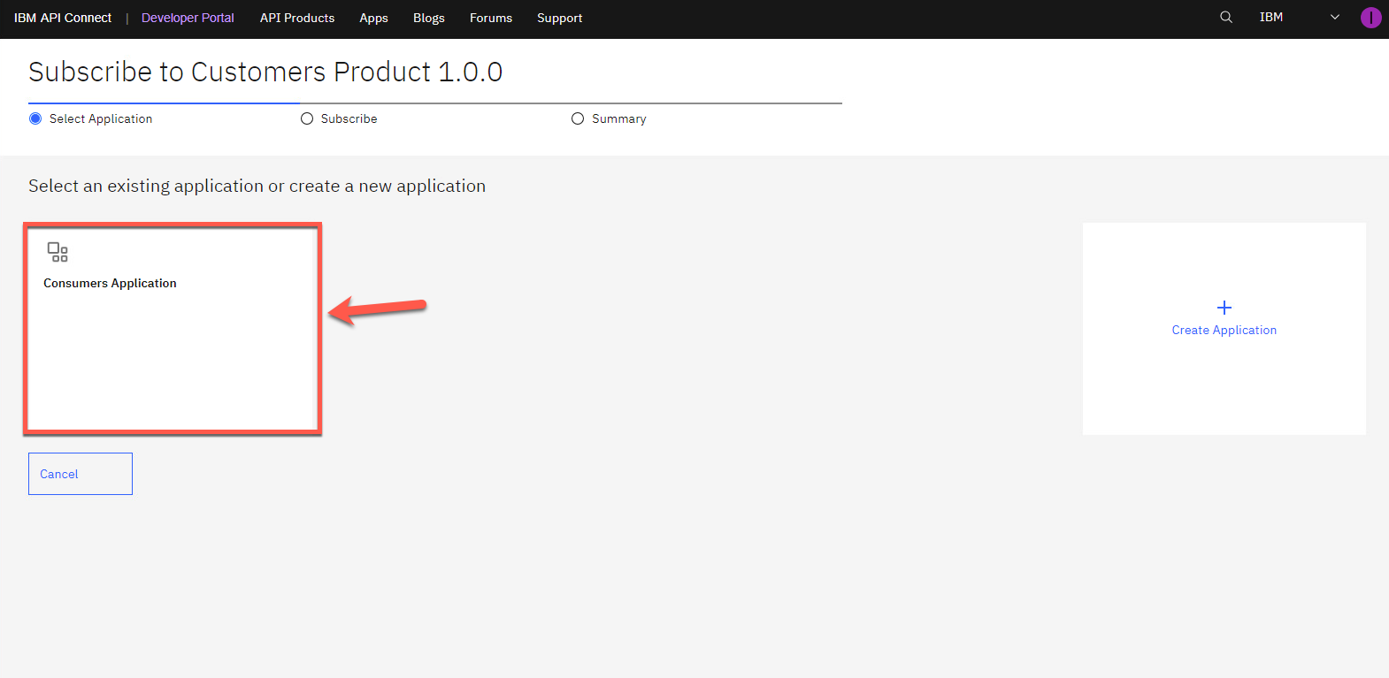 コンシューマ アプリケーションを選択します。