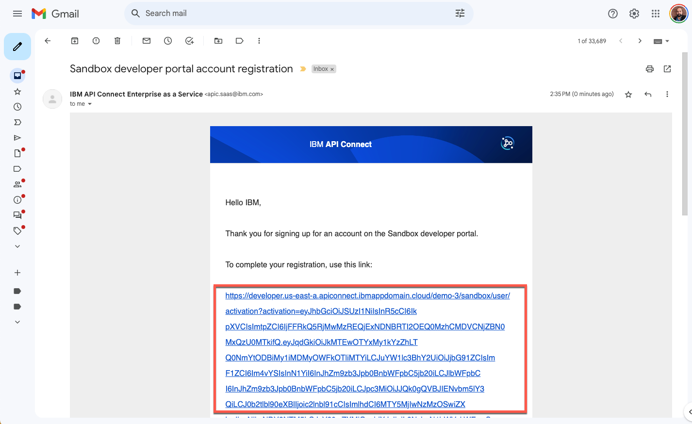 新しい開発者アカウントをアクティブ化するための電子メールが届きます。リンクをクリックして登録を検証します。