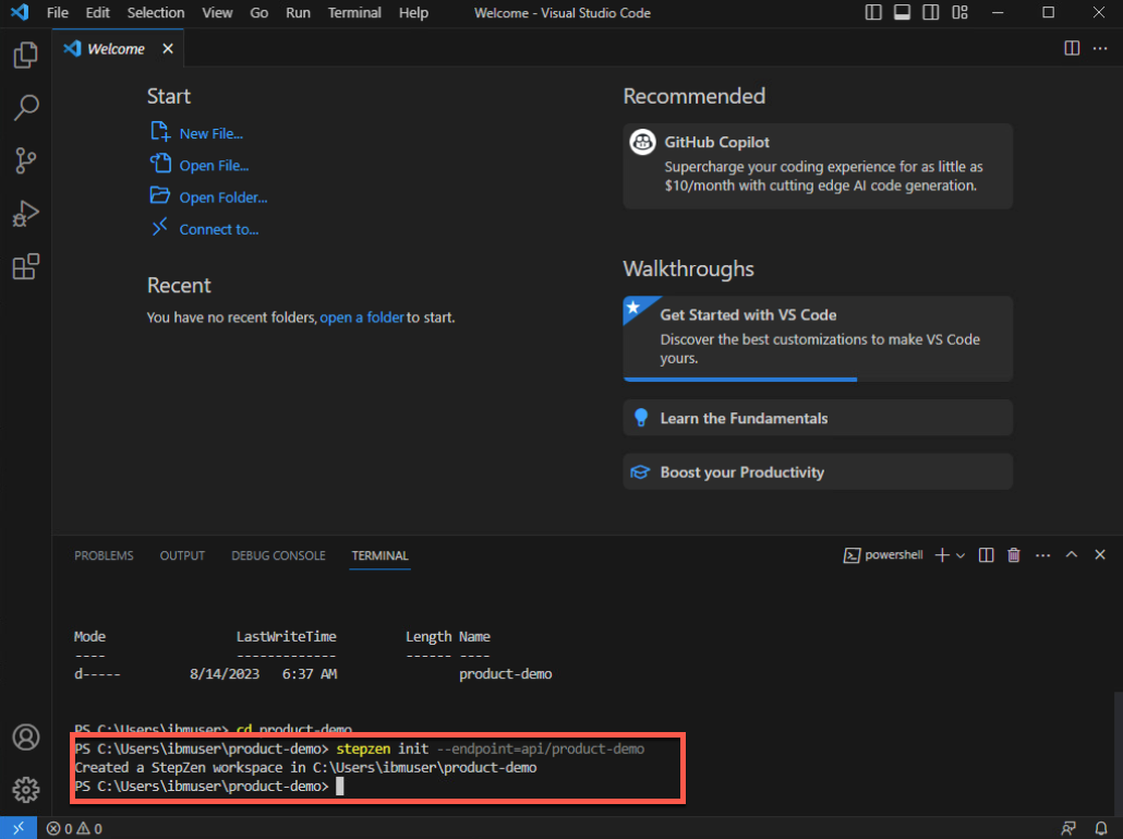 GraphQL API を構築する前に、新しいディレクトリを作成し、このディレクトリ内に StepZen ワークスペースを初期化しましょう。