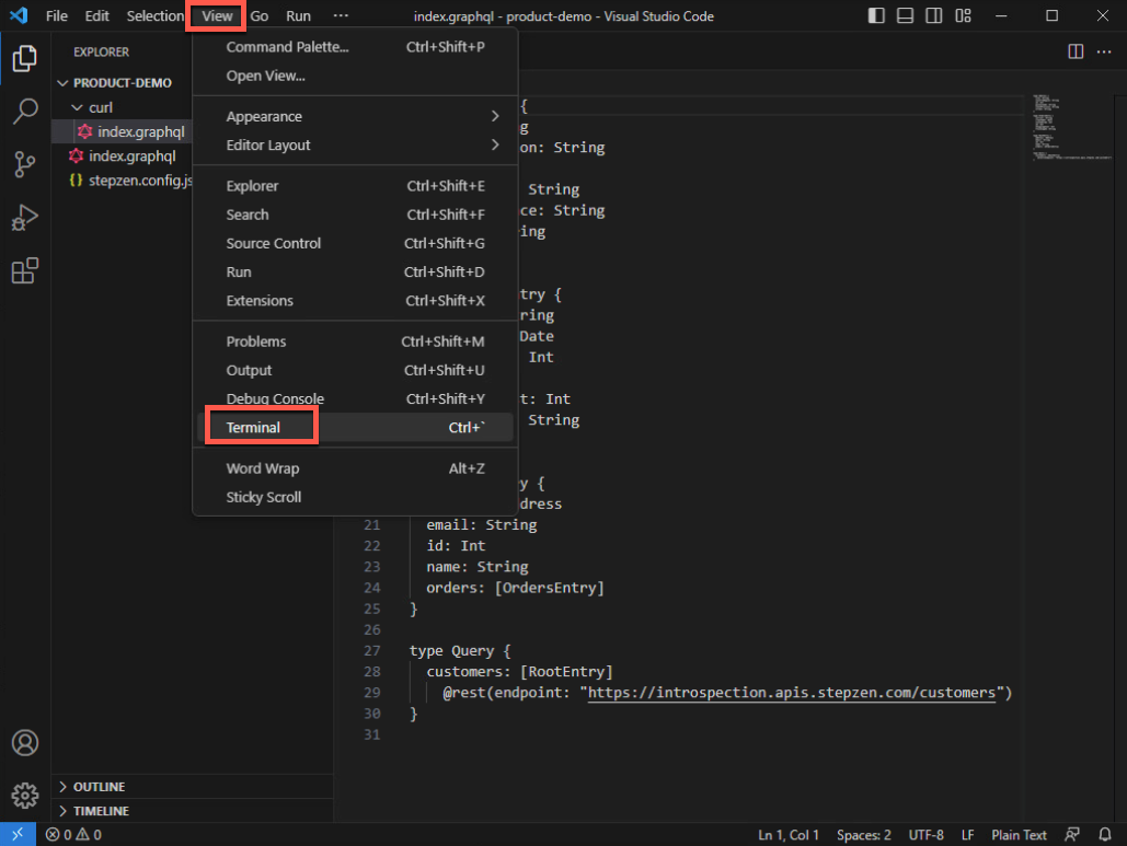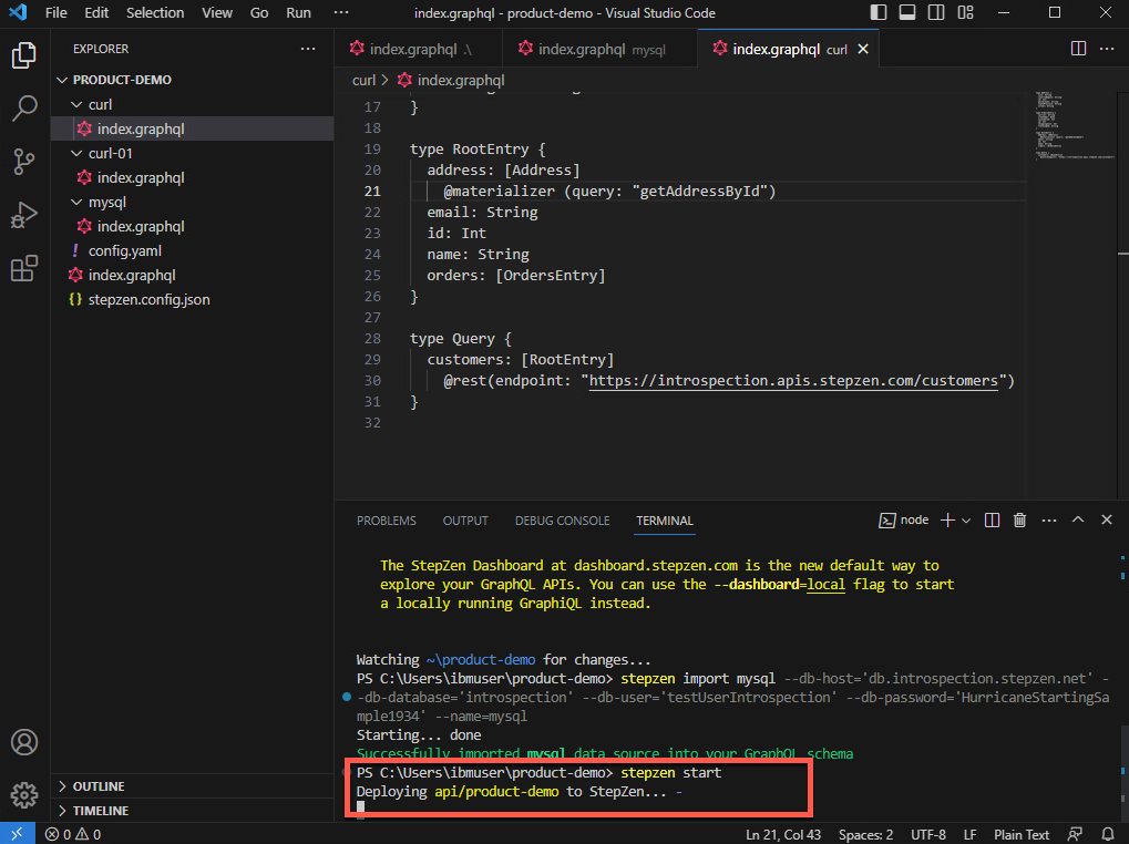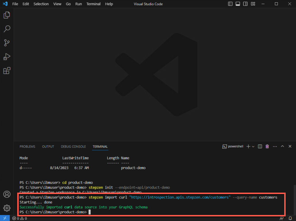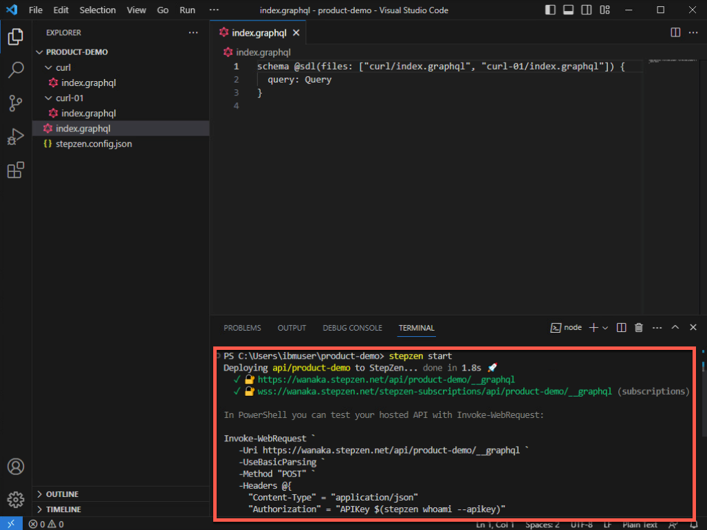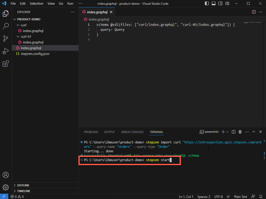 stepzen init --endpoint=api/product-demo