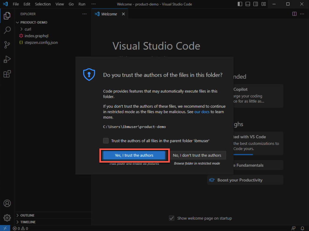 必要に応じて、[Yes, I trust the authors] ボタンをクリックします。
