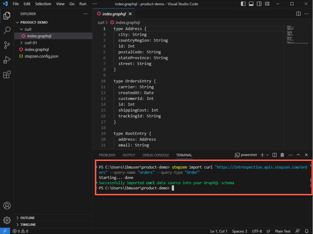 stepzen import curl "https://introspection.apis.stepzen.com/orders" --query-name "orders" --query-type "Order"