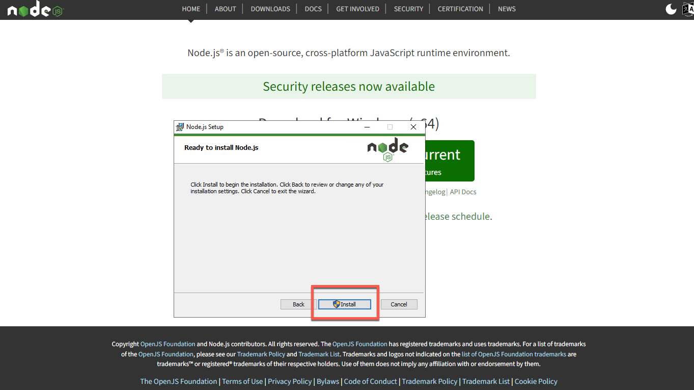 このセクションでは、Node.JS をマシンにインストールします。始めましょう!