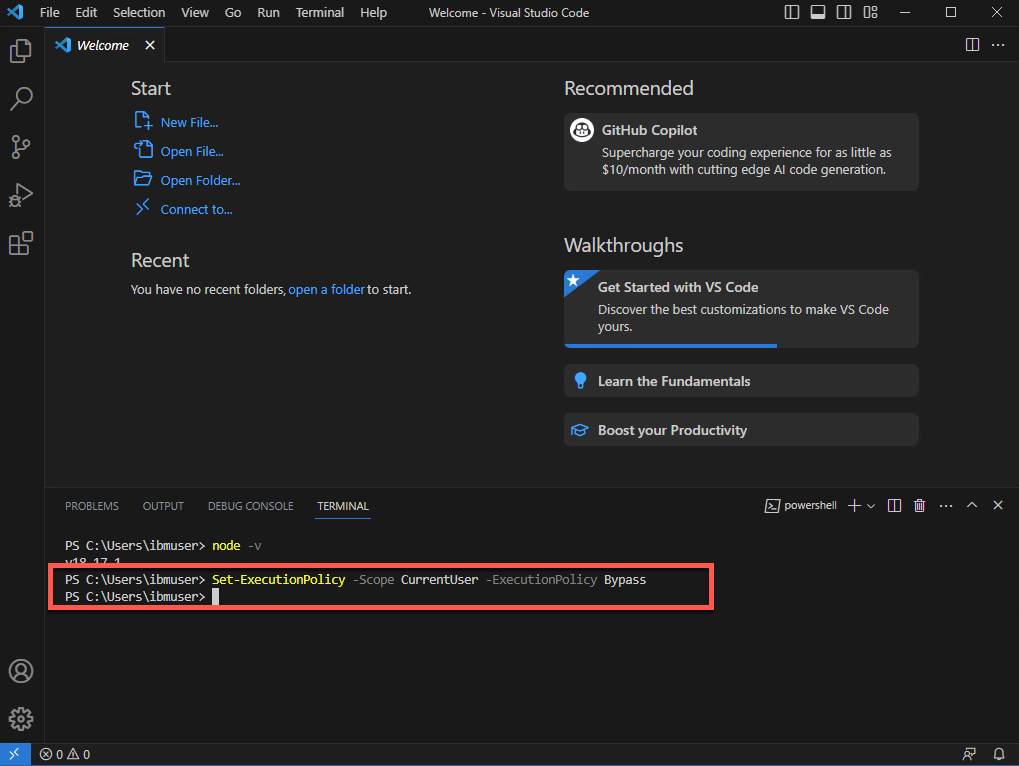 Set-ExecutionPolicy -Scope CurrentUser -ExecutionPolicy Bypass