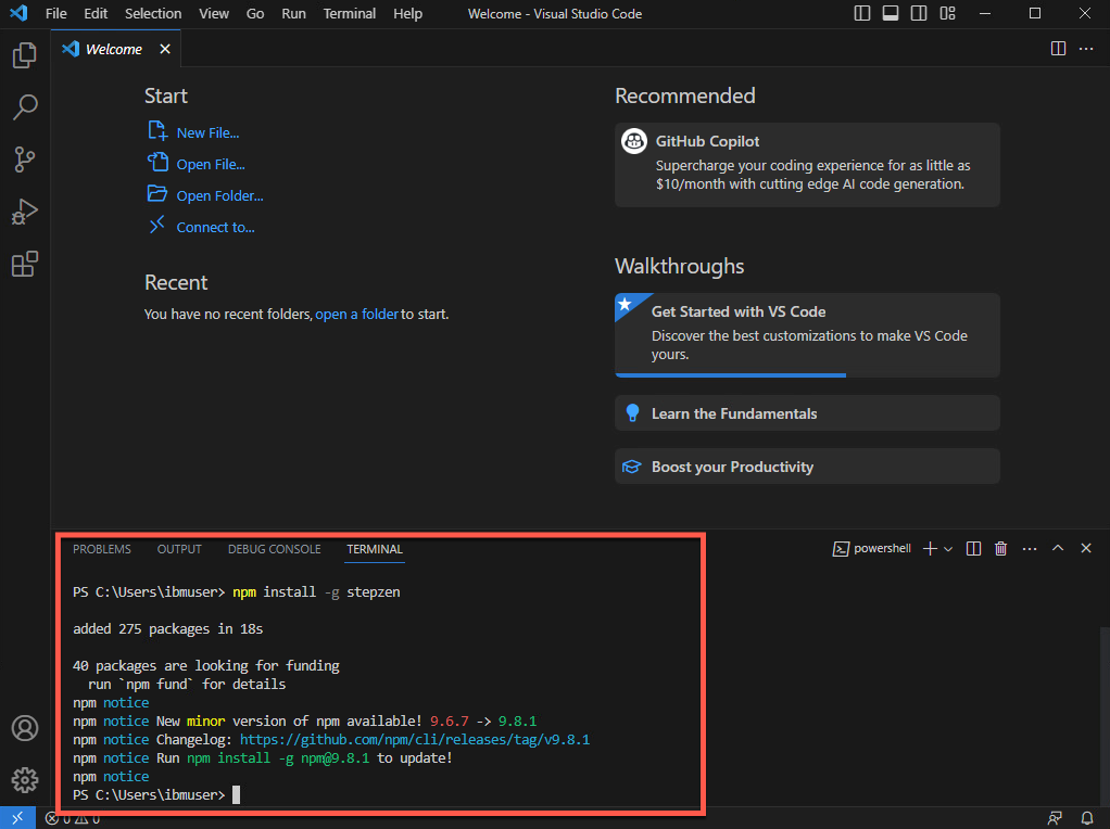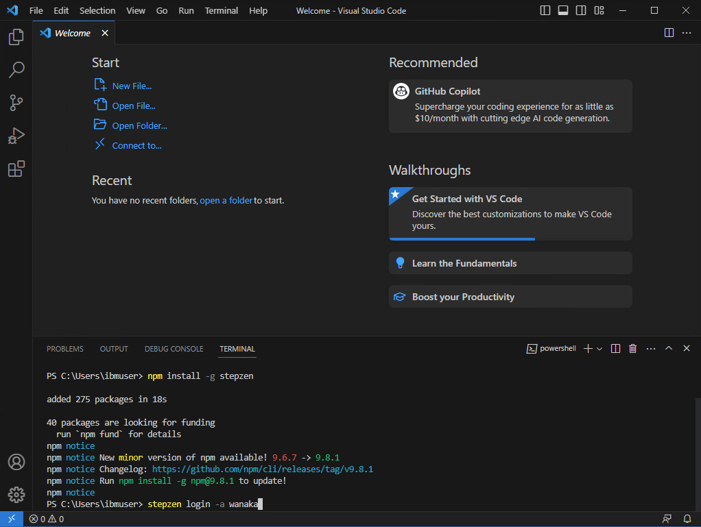 npm install -g stepzen